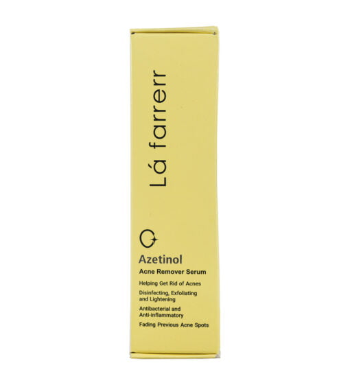 سرم ضد آکنه Azetinol لافارر حاوی آزلائیک اسید 15% ، عصارهی چای سبز، ویتامین A و ترکیبات ارگانیک ضد حساسیت، سازگار با انواع پوست است. بهترین محصولات ضد جوش، حاوی اسید آزلائیک هستند. اسید آزلائیک با داشتن خواص ضد باکتریایی، ضد التهابی، آنتی اکسیدانی و اکسیدکنندگی انتخابی عالی در ترکیب محصولات مراقبتی پوست است. آلزائیک اسید یک لایه بردار و مرطوب کنندهی موثر برای درمان آکنه، بیماری رزاسه( نوعی مشکل پوستی همراه با قرمزی) و ملاسما میباشد. ویژگی آنتی اکسیدانی و لایه برداری آن در صاف و یکدست کردن پوست مورد توجه است. اسید آزلائیک همچنین باعث کاهش چشمگیر فاکتورهای عامل حساسیت و برآمدگی در پوست میشود.