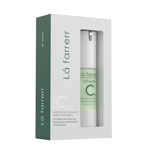 سرم ویتامین سی 20 درصد لافارر یک روشن کننده و ترمیم کننده است که با بهره گیری از ویتامینهای C ،E و فرولیک اسید به لایه برداری و جلوگیری از تولید ملانین کمک کرده و در نتیجه از ایجاد لکهای ناشی از افزایش سن، بارداری، آکنه و غیره جلوگیری میکند. سرم پوست لافارر ضمن رطوبت رسانی به پوست صورت، کاهش سایز منافذ و جلوگیری از آکنه، موجب کاهش التهابات و حساسیت های پوستی نیز خواهد شد. جلوگیری از فعالیت رادیکال های آزاد، پیشگیری از بروز علائم پیری، کمک به افزایش تولید پروتئین های کلاژن و الاستین، کاهش چین و چروک، روشن شدن پوست و افزایش لطافت و شادابی آن از دیگر اثرات این محصول است.